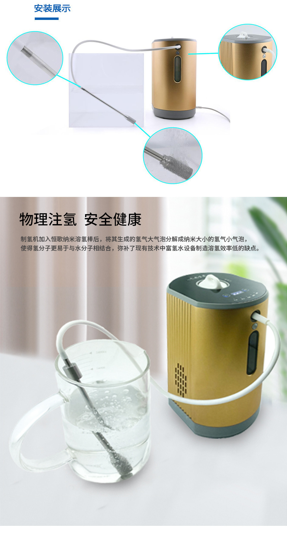不銹鋼材質具有良好的化學穩定性,與氫氣及水體中的物質反應性低,不會產生有害物質污染水體。且設備密封性能優異,能有效防止氫氣泄漏,確保在運行過程中的安全性,讓用戶使用更安心。